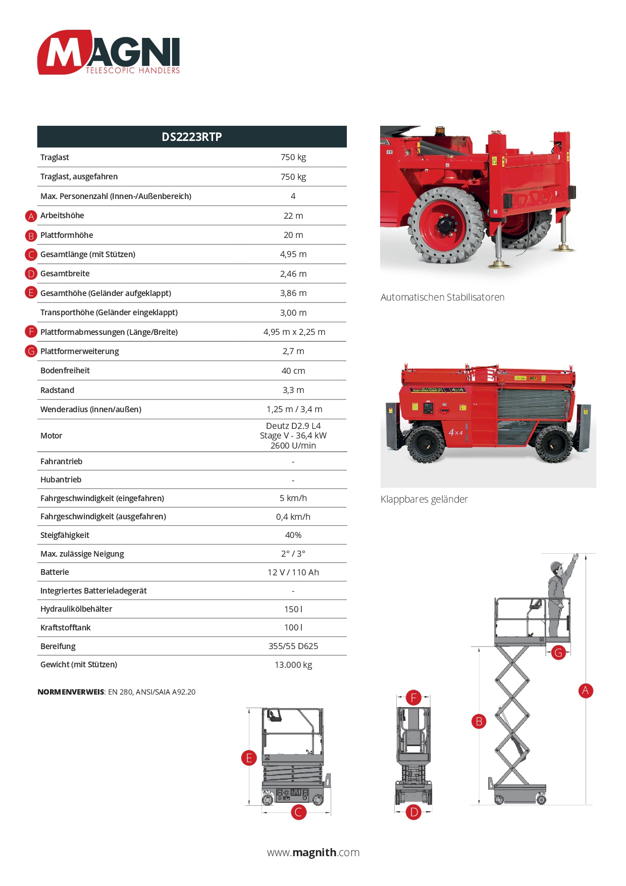| Plattformgröße (LxB) in m: | 4,95 x 2,25 |
